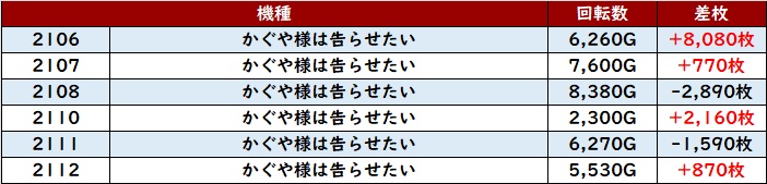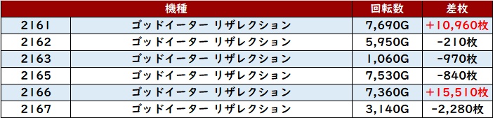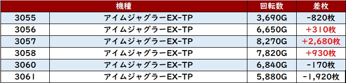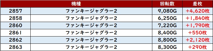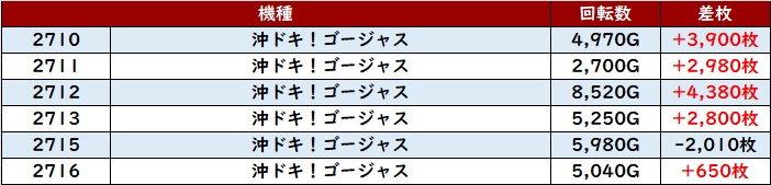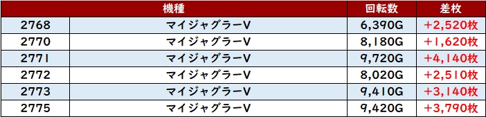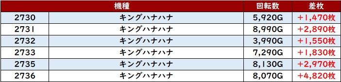 全台回転数8,100G超えと常に活気に溢れ、出玉感でも半数が差枚数+4,000枚超えの文句なしの結果を残した。