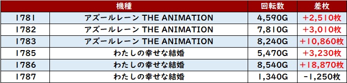 まずは「アズレン~わた婚 1781~1787」が機種跨ぎで大盛況に!