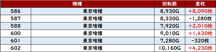 まずは「東京喰種 575~581、586~602」の2箇所で好調さが窺える結果に!