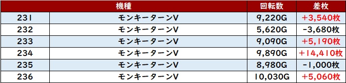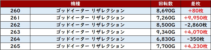 多少の荒さは見られたものの半数が差枚数+5,000枚超えとなっており、中には差枚数+1.4万枚超えと圧巻の出玉感まで確認することができた!