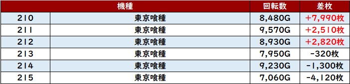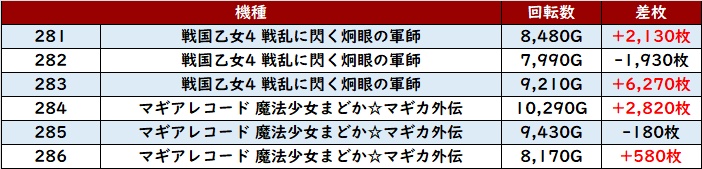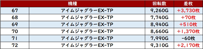 稼働もしっかりついており、6台中5台が大幅プラス差枚と充実した結果へ結び付けていた。