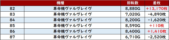 ・スロット集計機種計84台総差枚数:+158,100枚