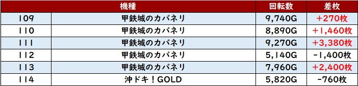 中でもスロットコーナーについては20スロ全340台総差枚数+10.2万枚超えとピックアップ箇所のみならず、全体を通しても優秀な結果を残した!