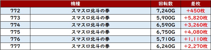 まずは「スマスロ北斗 763~768、772~777」が絶好調に!