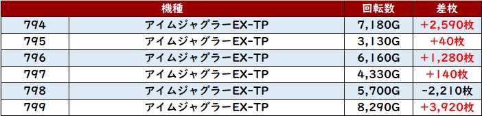 全台プラス差枚となる箇所もあり、抜群の稼働状況を活かして差枚数+7,960枚など素晴らしい出玉感も見せた!