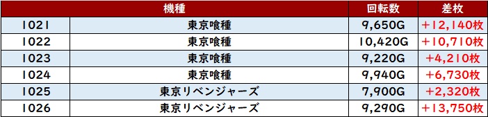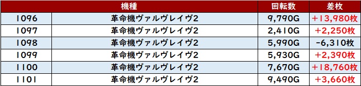 更に「ヴヴヴ2 1096~1101」も差枚数+1.3万枚超えが2台に!