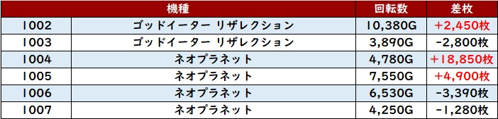 大半が差枚数+4,600枚超えに加え、中には差枚数+14,610枚と誰もが羨む出玉感となる台もあり、メイン機種にも劣らない結果を残した!