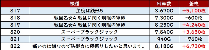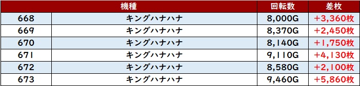全台回転数8,000G以上大幅プラス差枚と文句なしの結果を残した。