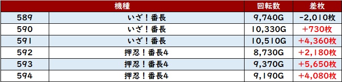 続いて「いざ番~番長4 589~594」も機種を跨いで絶好調!