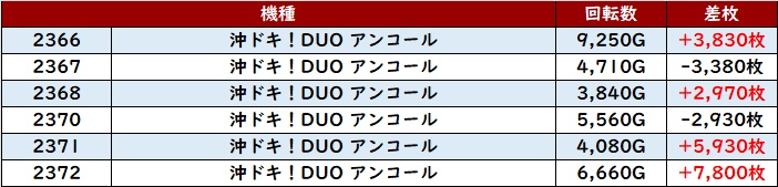 更に「沖ドキゴージャス 2312~2318」「沖ドキDUO2 2366~2372」といった「沖ドキシリーズ」が絶好調!