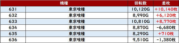 続いて「東京喰種 631~636」も優秀な数値で絶好調に!