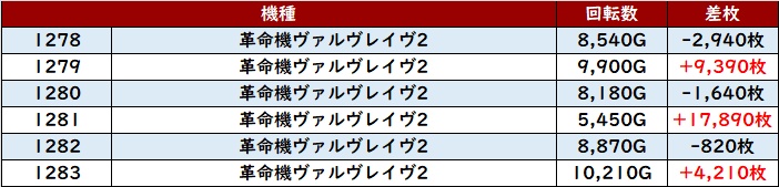 ・1台あたりの平均差枚数:+2,800枚