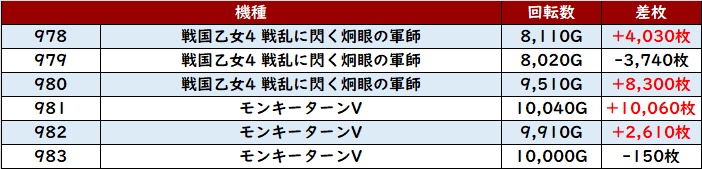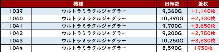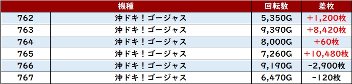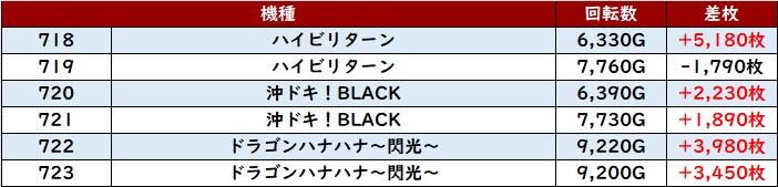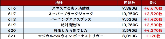 続いて「スマスロ炎炎~マジハロBT 616~621」が全台プラス差枚&回転数8,000G超えと絶好調!