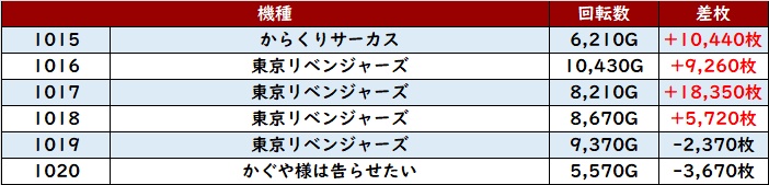 まずは「からくりサーカス~かぐや様 1015~1020」が3機種を跨いで大盛況に!