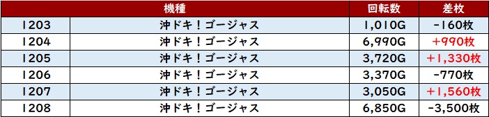 半数が差枚数+5,500枚超えとインパクトのある出玉感を叩き出しており、店内の盛り上がりを大きく後押しした。