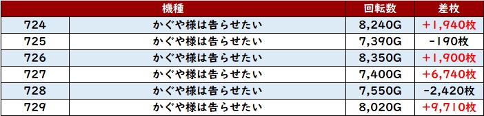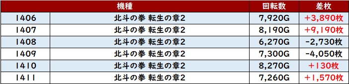 差枚数+5,540枚を筆頭にAタイプらしからぬ出玉感を誇り、更に回転数9,200G超えの台が多数見受けられた。