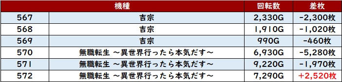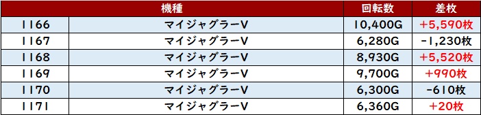 稼働と状況の良さがしっかり噛み合い、全台大幅プラス差枚と大変満足度の高い結果を叩き出していた!