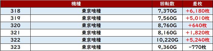 朝イチは「東京喰種」「北斗転生2」「ヴヴヴ2」「スマスロゴッドイーター」「鉄拳6」を筆頭に、メイン機種や新台が満台もしくはほぼ満台となった。