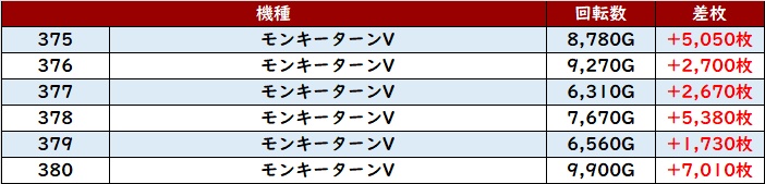まずは「モンキー5 375~380」が盛り上がりの中心に!