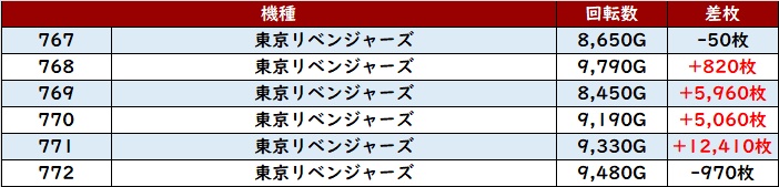 こちらも12台中11台が大幅プラス差枚としっかり打ち続けたユーザー達を裏切らない出玉感を記録した。