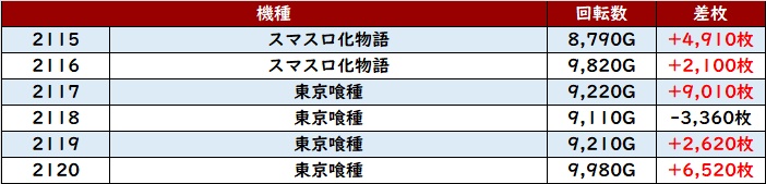 今回は「スマスロ化物語~東京喰種」「北斗転生2」など状況が良さそうな箇所を確認!