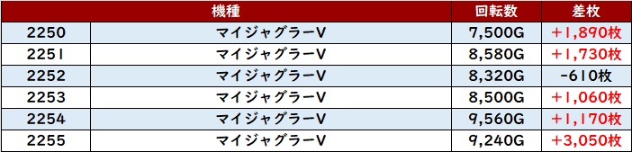 ・1台あたりの平均差枚数:+2,560枚