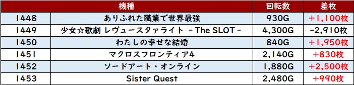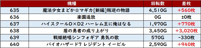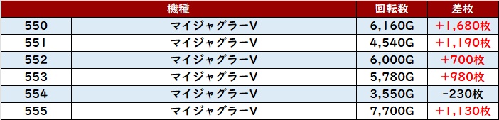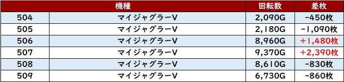 展開問わず全台回転数7,500Gと回されており、粘るべき状況であったことが窺えた。