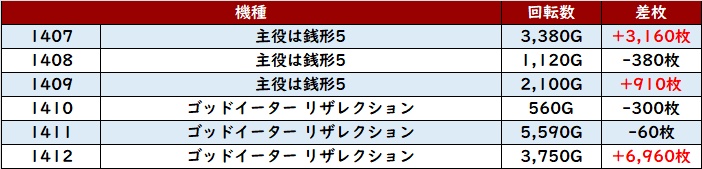 その結果、6台中5台が差枚数+2,300枚以上と素晴らしい出玉感を記録し、盛り上がりを牽引した!