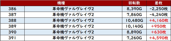 全台回転数8,900G超えに加え、大半が差枚数+5,600枚超えという驚くべき数値を残した!