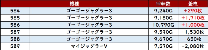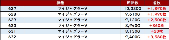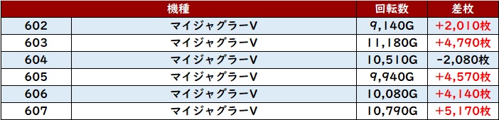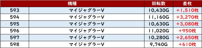 また「マイジャグ5」3箇所計18台中17台がプラス差枚と絶好調!