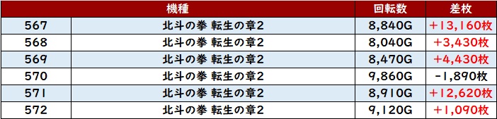 まずは「北斗転生2 567~572」が盛り上がりを牽引!