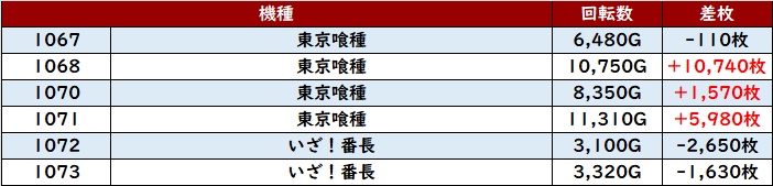 ・スロット集計機種計30台総差枚数:+137,100枚