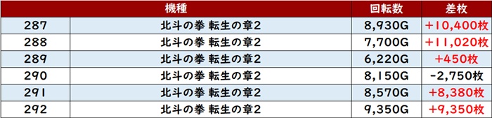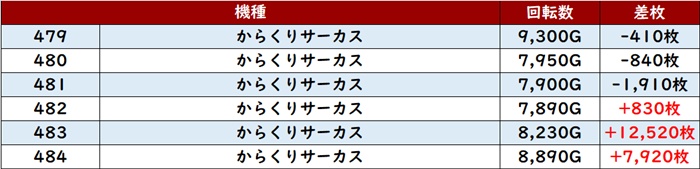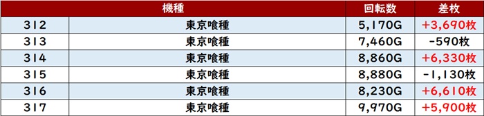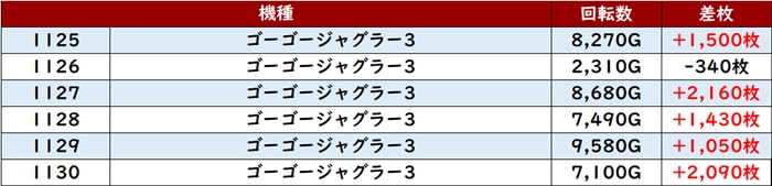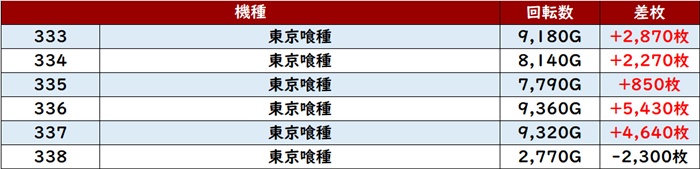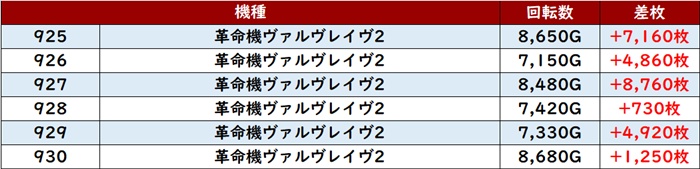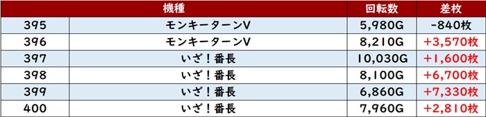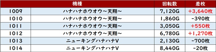 大幅に出玉感を伸ばす台が半数以上を占めており、中には差枚数+1万枚超えの台を2台も排出していた!