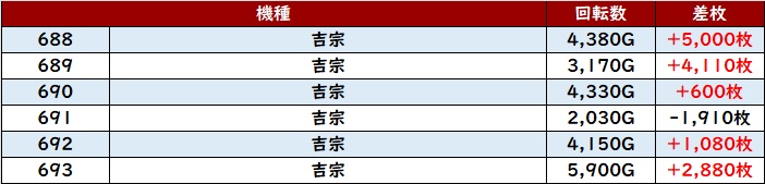 回転数9,000G超えを記録する台が大半を占めており、状況の良さは間違いなさそうであった。