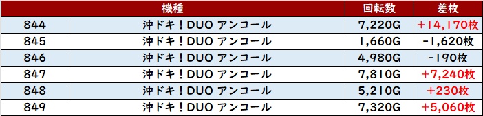 まずは「沖ドキDUO2 844~849」が盛り上がりを牽引!