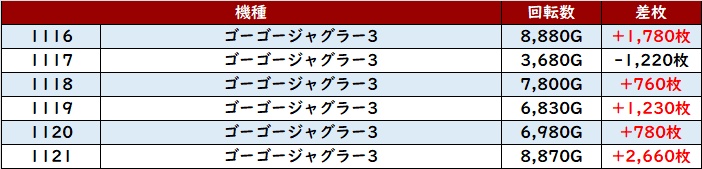 続いて「ジャグラーシリーズ」が3箇所で好調に!
