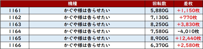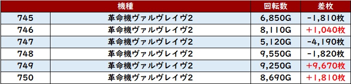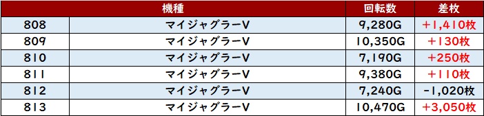 6台中5台が差枚数+4,300枚超えの大幅プラス差枚、更に差枚数+1万枚超えが2台と目を見張る出玉感で溢れており、メイン機種たる所以を示す活躍ぶりを見せた!