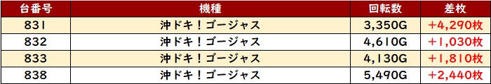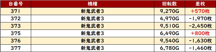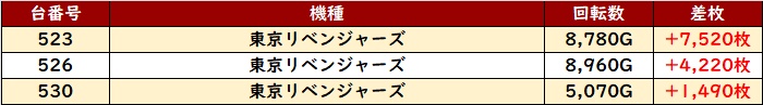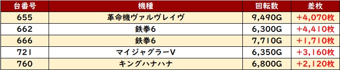 惜しくも不発気味の台が目立ってしまっていたが、稼働はしっかりついていた為、展開次第で結果は大きく変わっていたのかもしれない。