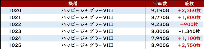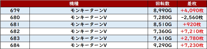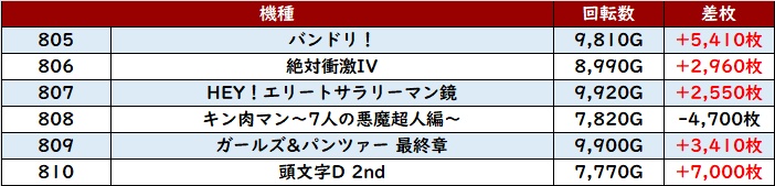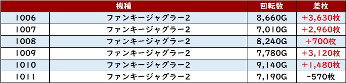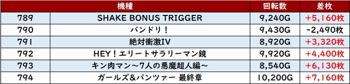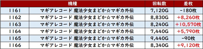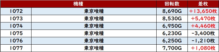 なんと差枚数+1.4万枚超えが2台も確認でき、圧倒的な存在感を放っていた。