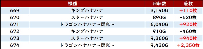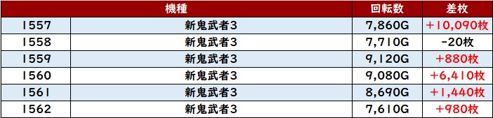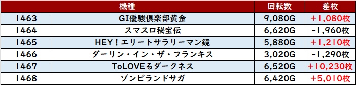 回転数1万G超え且つ差枚数+13,180枚の凄まじい数値を記録する台を筆頭に、優秀な結果が続出していた!
