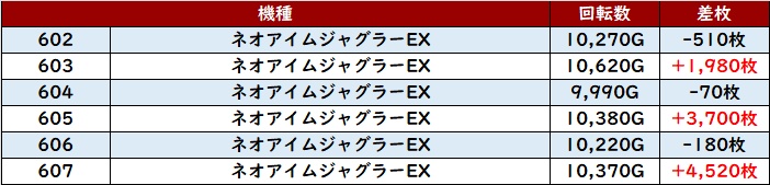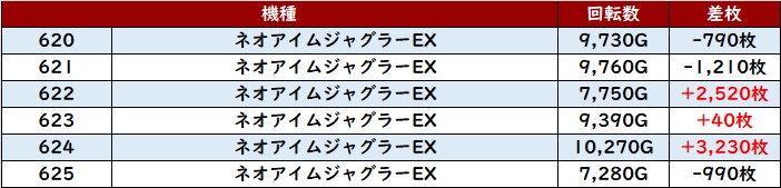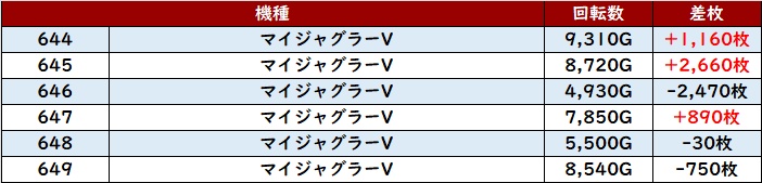 まずは「マイジャグ5~ウルミラ 631~636」が全台プラス差枚と文句無しの結果に!
