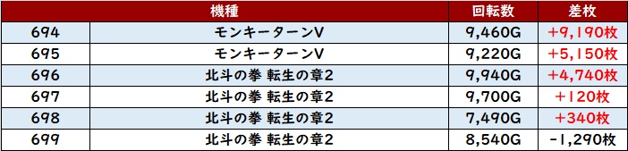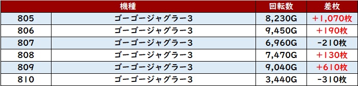 ・1台あたりの平均差枚数:+2,190枚