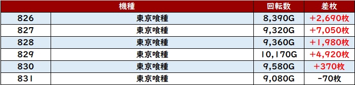 朝イチは「北斗転生2」「モンキー5」「鉄拳6」「東京喰種」「スマスロ北斗」から流れていった。