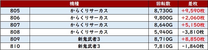 まずは「からくりサーカス~新鬼武者3 805~810」が凄まじい出玉感を誇った!