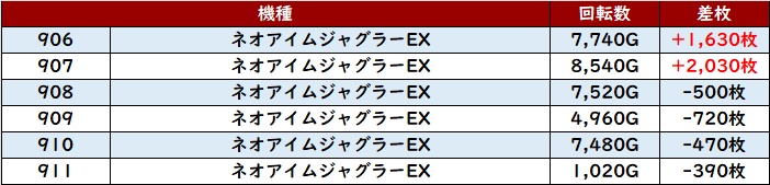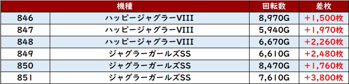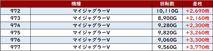 更に「マイジャグ5 972~977」は全台大幅プラス差枚と優秀な活躍に!