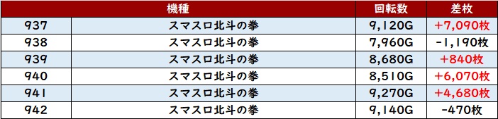 大半が回転数8,600G超えと抜群の稼働状況となっており、差枚数+9,590枚を筆頭に強烈な数値が盛り上がりを牽引していた!