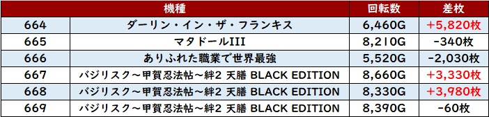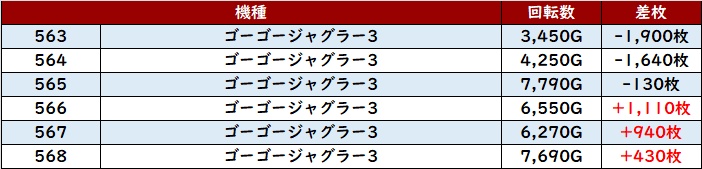 6台中5台がプラス差枚と優秀な結果を残し、好調さを周囲にアピールしていた。