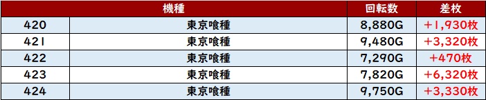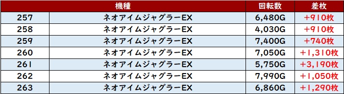 中には差枚数+10,440枚と大台を突破する台まで見られ、凄まじい熱量を放ち続けていた。