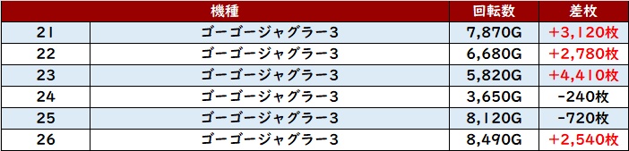熱心に打ち込まれたことでポテンシャルが引き出され、大半が差枚数+3,300枚超えと圧巻の結果を残した!