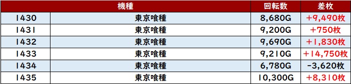続いて「東京喰種 1430~1435」が驚異的な出玉感に!